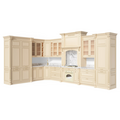 ПерейтиИтальянская классическая угловая кухня с рамочными фасадами молочного цвета и бронзовой патиной. Многообразие доступных решений позволит безупречно вписать гарнитур в ваш интерьер, который несомненно станет визитной карточкой вашего дома. Материал фасадов — мдф Egger®. Внутренний корпус — ламинированный дсп Egger® Алебастр белый. Вся фурнитура в кухонном гарнитуре Blum® с доводчиками.