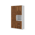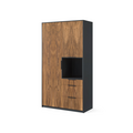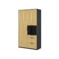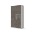 ПерейтиРаспашной платяной шкаф с 3 выдвижными ящиками и нишей для аксессуаров серого цвета и цвета дуба. Материал фасадов — лдсп. Внутренний корпус — ламинированный дсп Egger® Диаманд серый. Шкаф подойдет для хранения большого количества одежды и обуви. Вся фурнитура в шкафу Blum® с доводчиками.