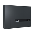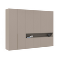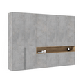 ПерейтиРаспашной шкаф для одежды цветов сосна Касцина и бетон Чикаго темно-серый. Материал фасадов и корпуса — ламинированный дсп Egger®. В шкафу расположено большое количество полок, ящиков, штанг для короткой и длинной одежды. Он способен вместить в себя даже самый большой гардероб. А на открытой полке можно будет разместить красивые предметы интерьера. Вся фурнитура в шкафе Blum® с доводчиками.